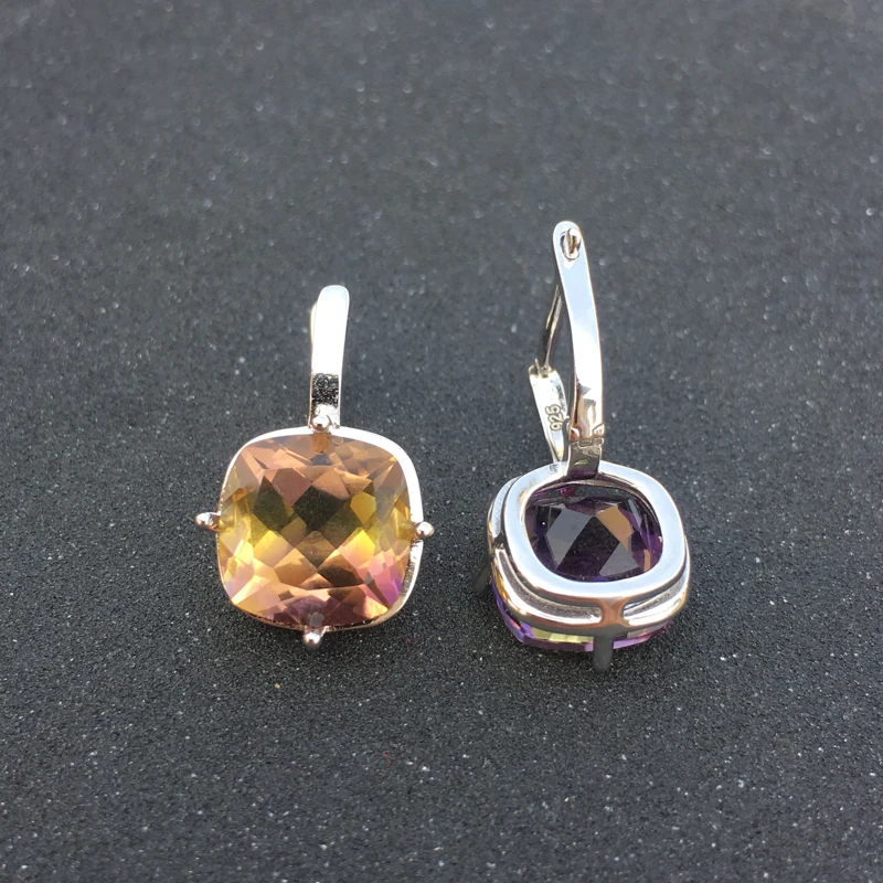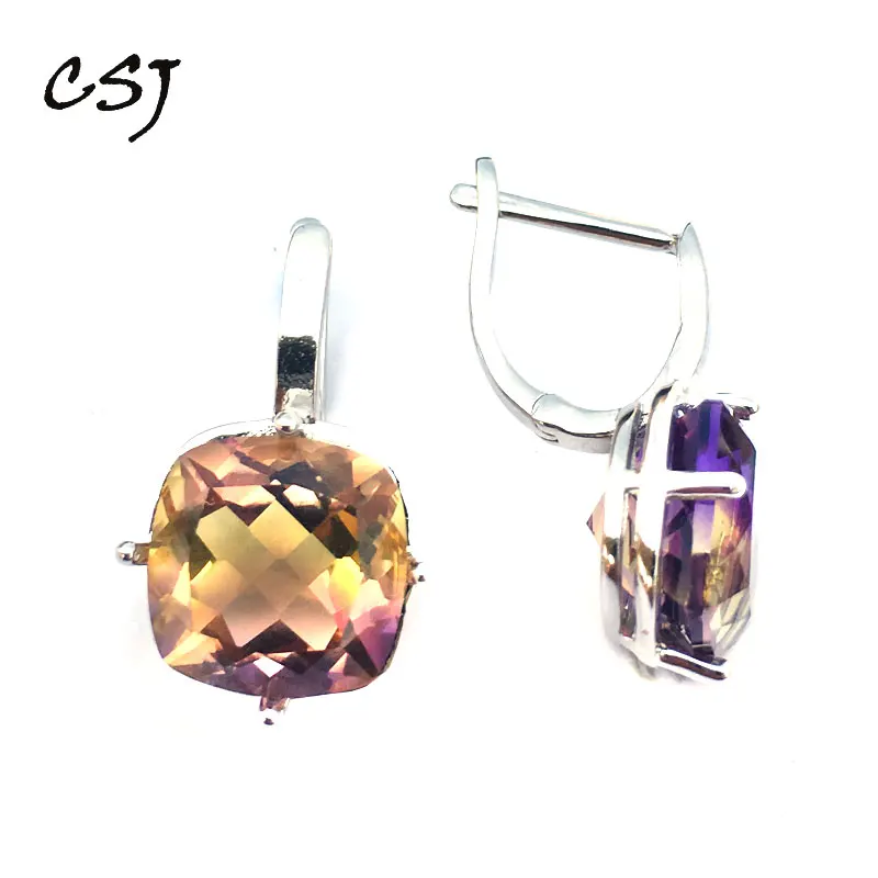 Product Name: CSJ Ametrine kamień kwarcowy szlachetny elegancki dobry kolczyk srebro 925 Cushion10mm 9Ct Fine Jewelry dla kobiet Lady prezent
