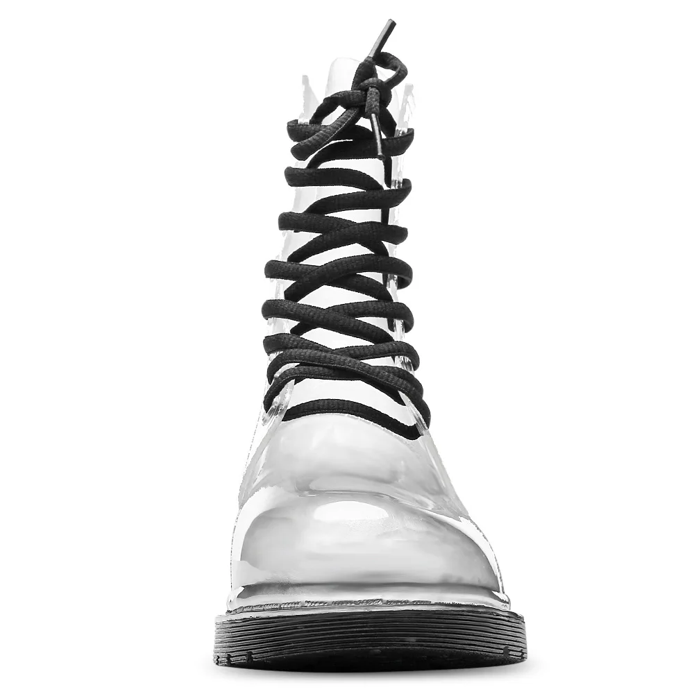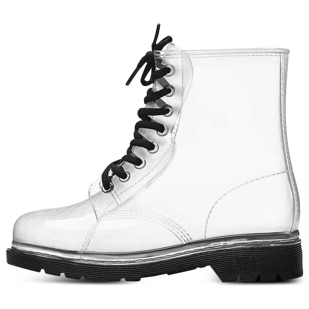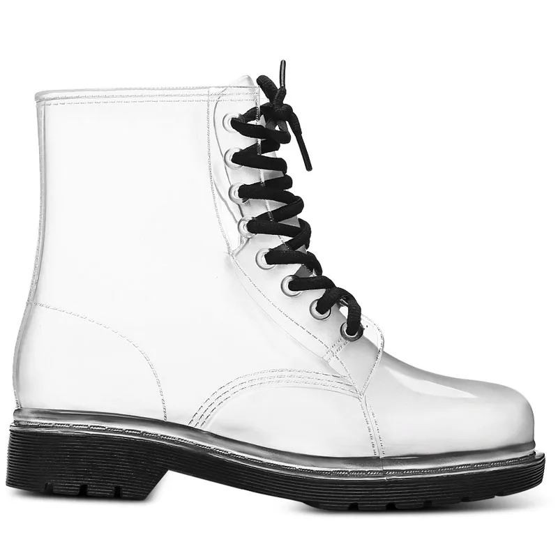 Product Name: Aleafalling damskie buty przeciwdeszczowe starsza pani zasznurować wodoodporne buty damskie przezroczyste cukierkowe kolory kostki odkryte buty dziewczęce AW18