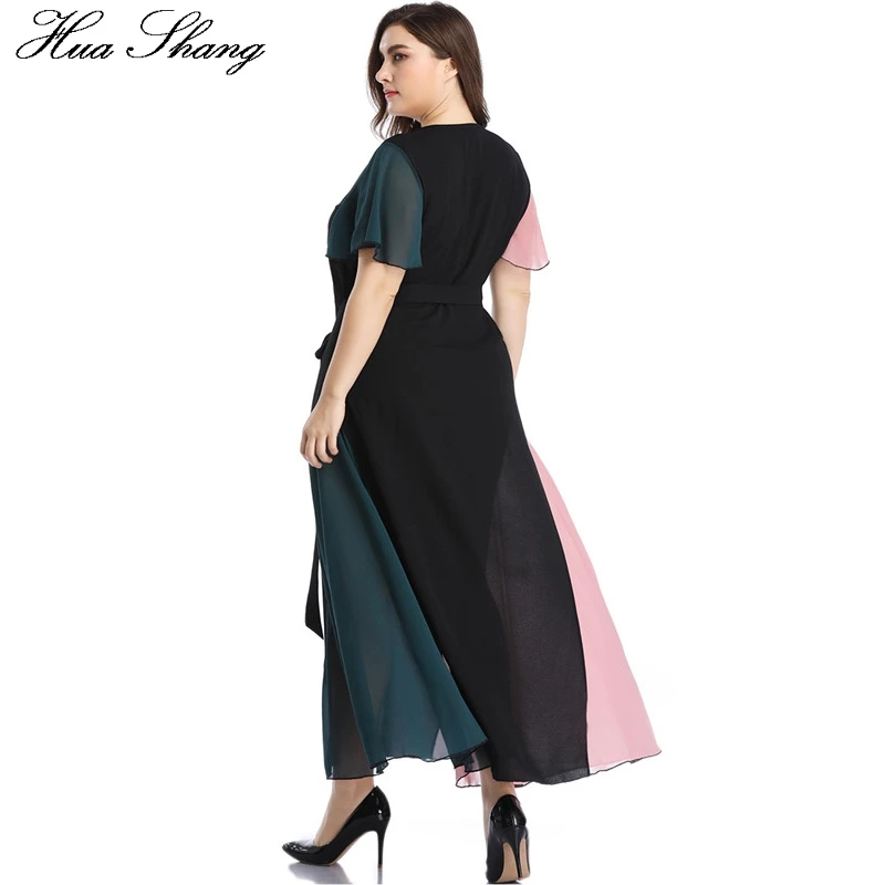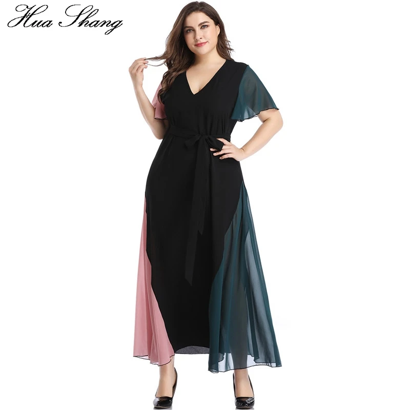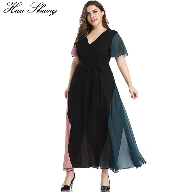 Special Offer Letnia sukienka plażowa 2019 kobiet V Neck Ruffles maxi na krótki rękaw długa sukienka Plus rozmiar opasane wielokolorowe eleganckie sukienki szyfonowe Discount 50% Today!