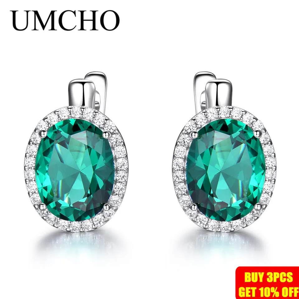 Special Offer UMCHO szmaragd kamień klipsy dla kobiet oryginalna 925 srebro kolczyki rocznica ślubu modna biżuteria na prezent nowy Discount 50% Today!