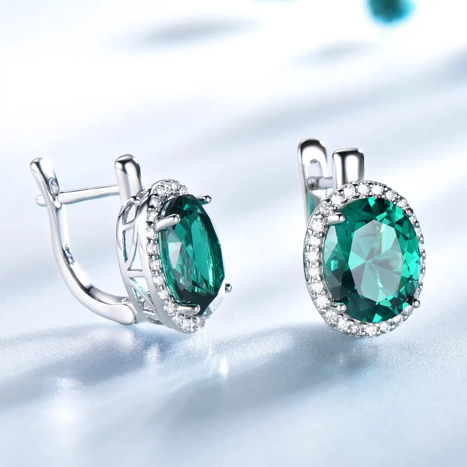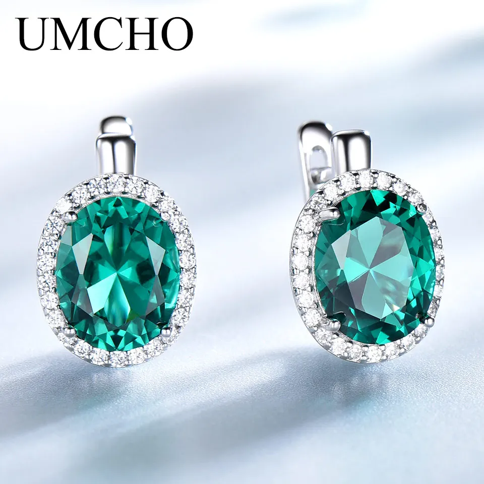 Product Name: UMCHO szmaragd kamień klipsy dla kobiet oryginalna 925 srebro kolczyki rocznica ślubu modna biżuteria na prezent nowy
