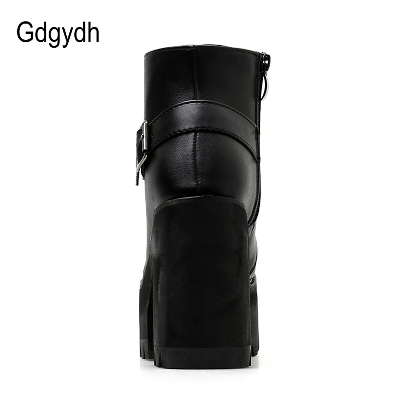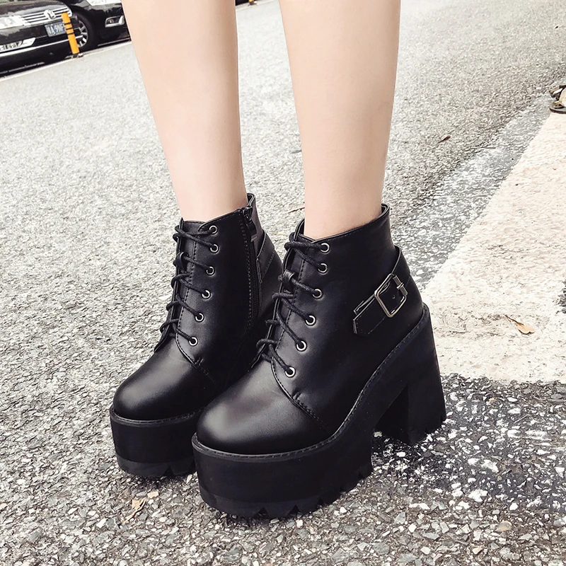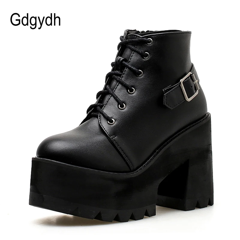 Special Offer Gdgydh wiosna czarne botki buty damskie platformy z okrągłym czubkiem jesienne buty grube szpilki zasznurować i klamra obuwie damskie Discount 40% Today!