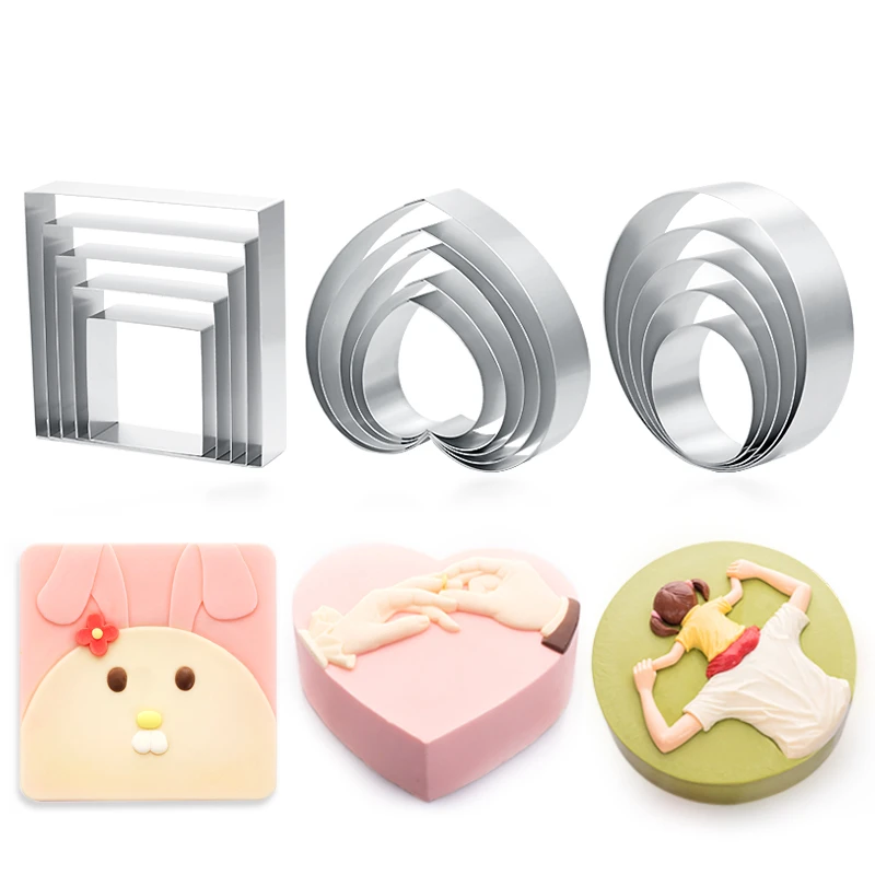 Product Name: 1 sztuka kształt zaokrąglony forma na piankowe ciasto ze stali nierdzewnej mus ciasto pierścienie formy rocznica urodzinowy tort weselny formy do pieczenia