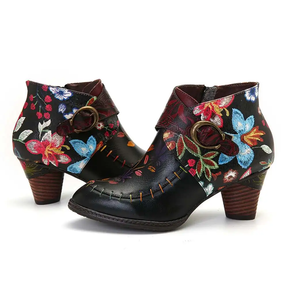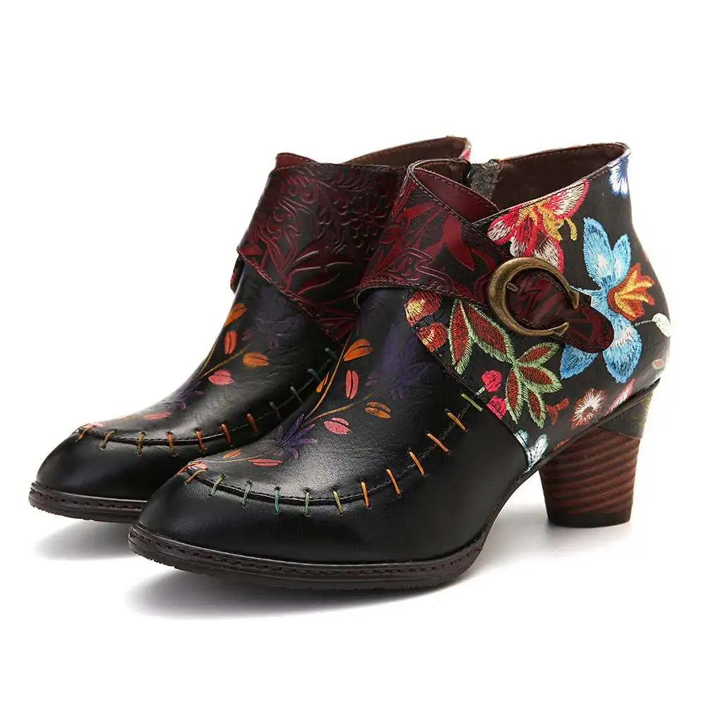 Product Name: SOCOFY kolorowe buty szwy malowany kwiat prawdziwej skóry eleganckie botki eleganckie buty damskie Botines Mujer 2019