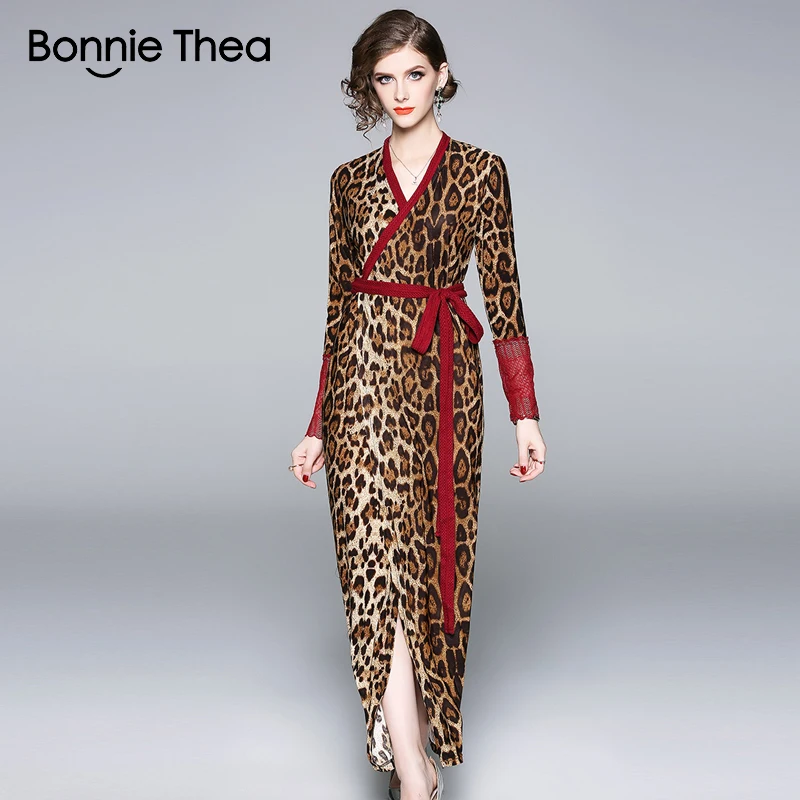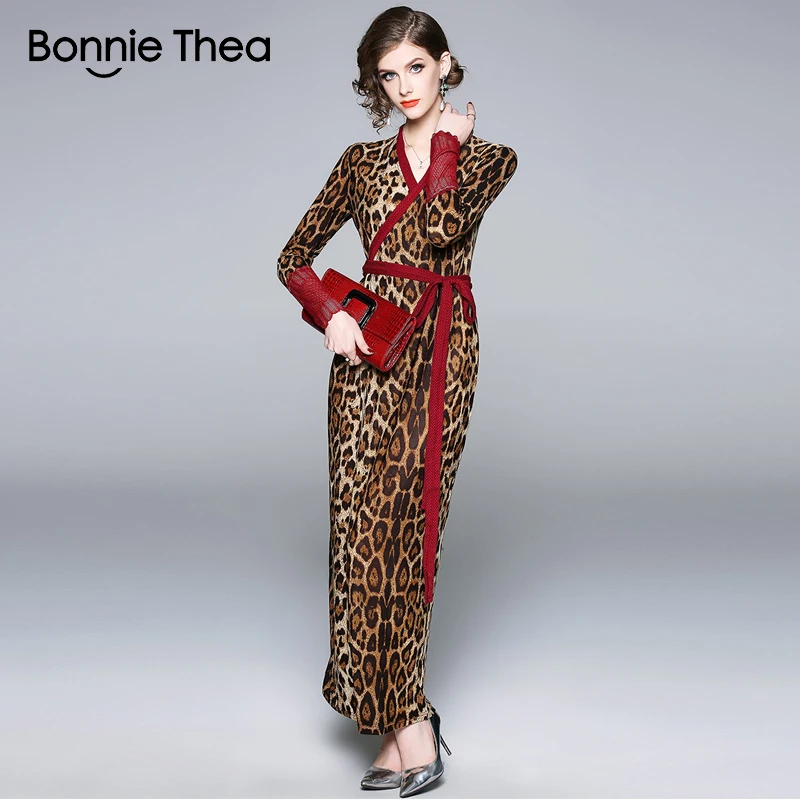 Product Name: Bonnie thea kobiety sexy Leopard jesień sukienka płaszcza elegancka sukienka maxi boho bodycon sukienek formalna moda vestido 2018