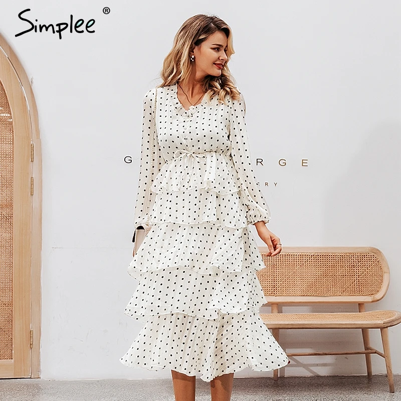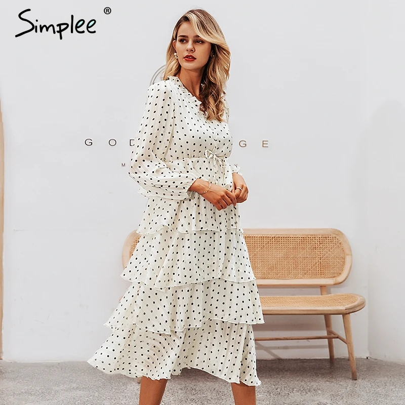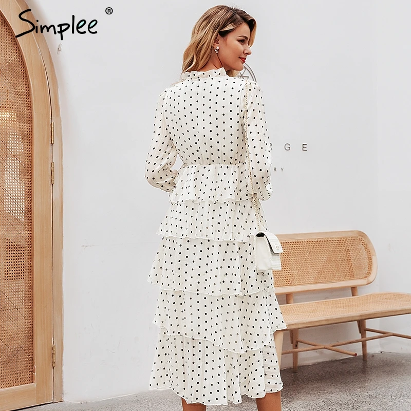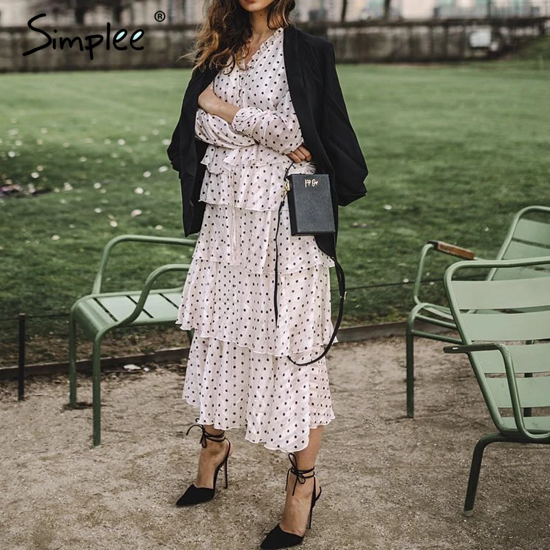 Special Offer Simplee elegancka sukienka w groszki damska z długim rękawem marszczona długa sukienka warstwowa damska Vintage damska suknia wieczorowa vestidos Discount 45% Today!