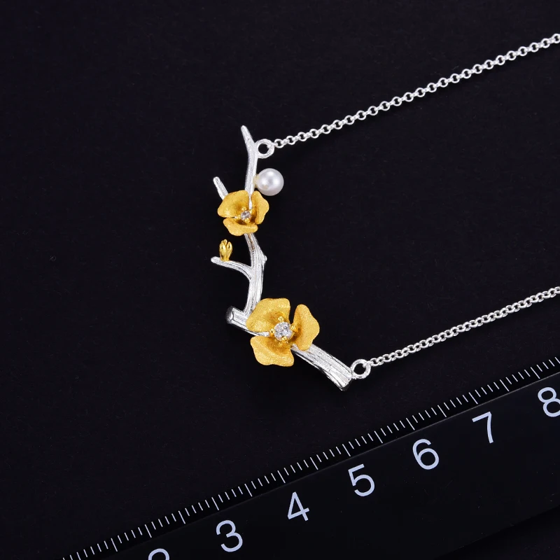 Special Offer Lotus zabawy prawdziwe 925 Sterling Silver Handmade projektant biżuterii Delicated kwiat śliwy naszyjnik kwiatowy z łańcucha dla kobiet Discount 52% Today!