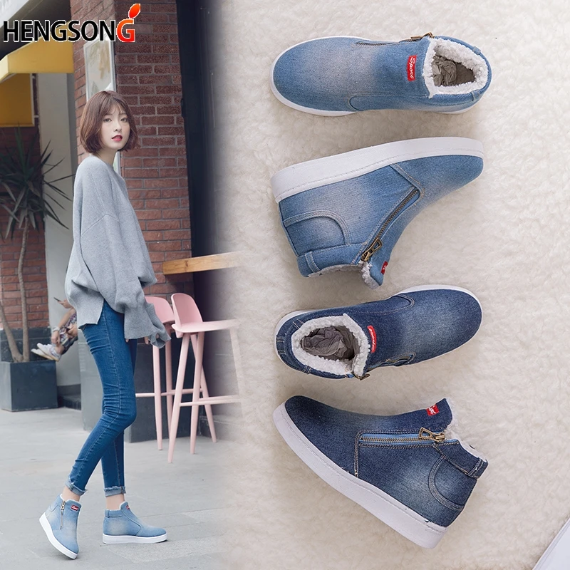 Special Offer Jesienne zimowe buty damskie polarowe Push ciepłe buty na śnieg dżinsy Boot klasyczne wysokie góry codzienne buty Zapatos De Mujer Discount 37% Today!
