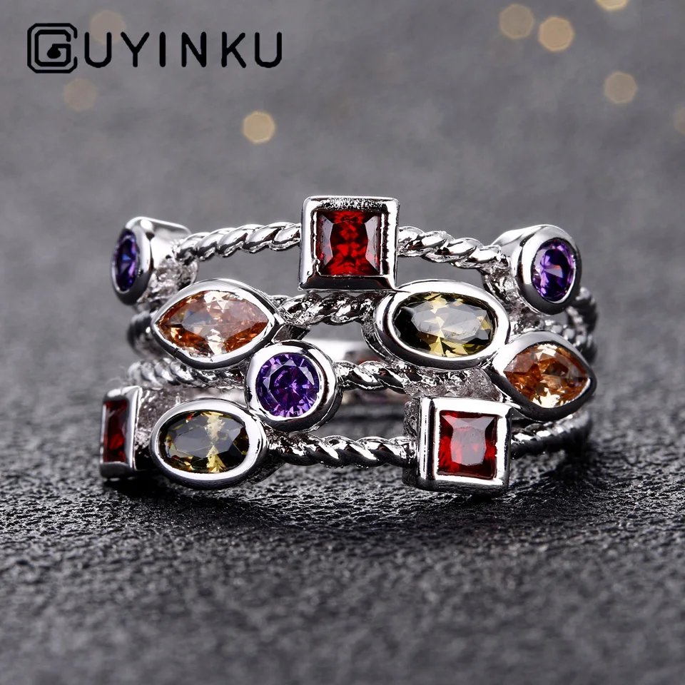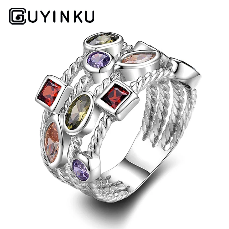 Special Offer GUYINKU New Arrival 925 srebro Ring Finger z Rainbow Topaz Vintage Rings dla kobiet biżuteria zaręczynowa S925 prezenty Discount 49% Today!