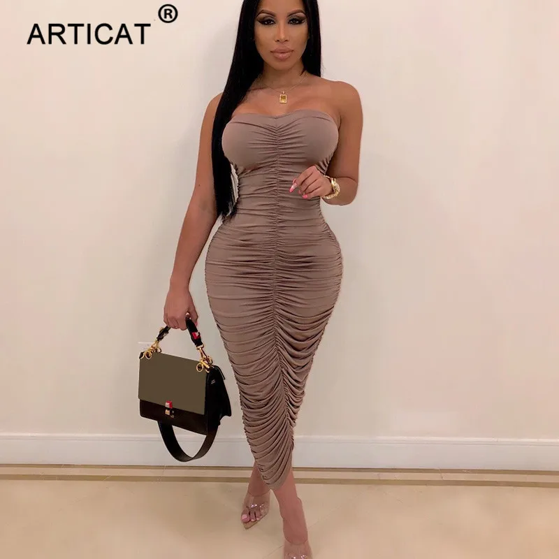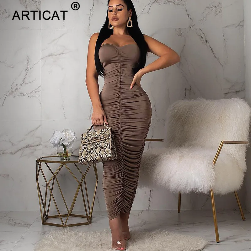 Product Name: Arctic cat bez ramiączek plisowane Sexy bandaża sukni kobiety ubierają Skinny Slim elastyczna Bodycon sukienka elastyczna Backless Wrap długa sukienka Vestidos