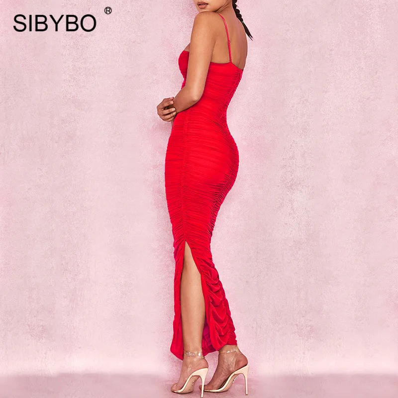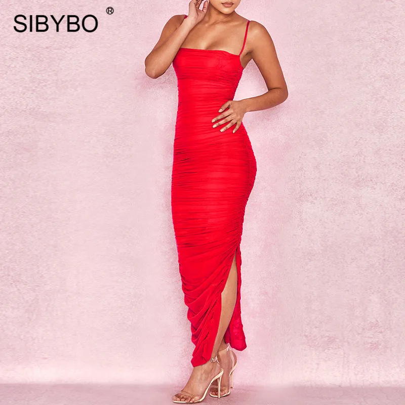Special Offer Sibybo Mesh przezroczysty podział seksowna długa sukienka Party Spaghetti pasek sukienka maxi bez rękawów lato Backless obcisła sukienka kobiet Discount 40% Today!