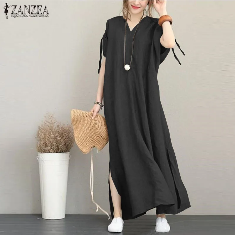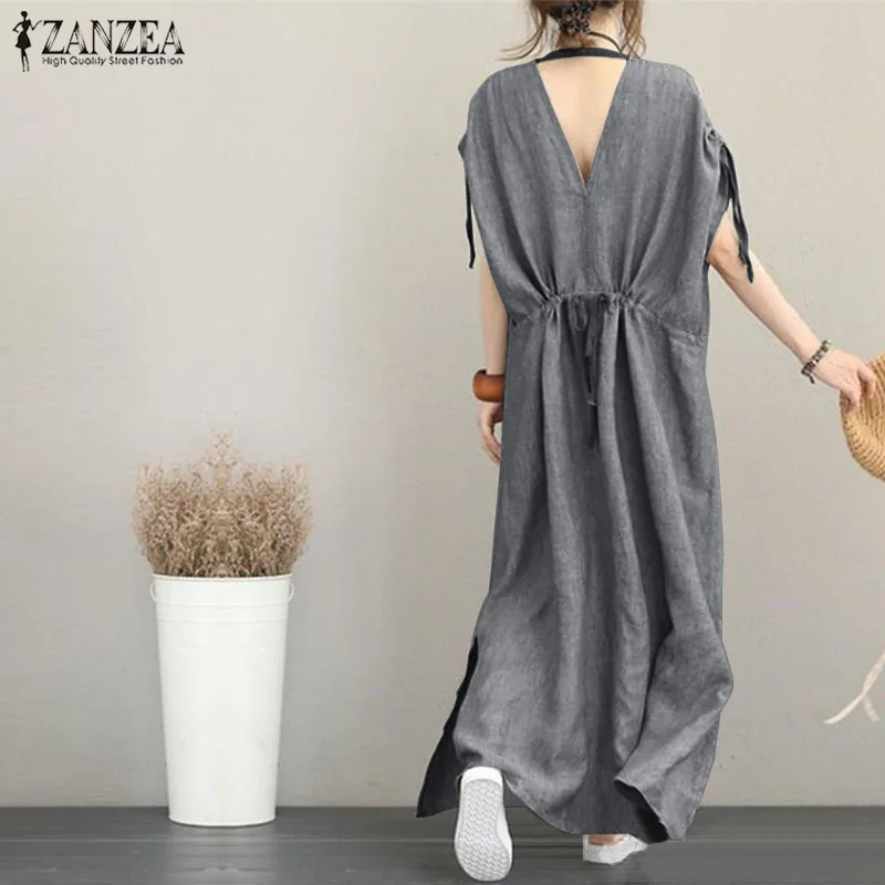 Product Name: ZANZEA 2019 kobiety Maxi długa sukienka lato elegancka V Neck z krótkim rękawem Vestido Femininas luźna praca OL Casual długa sukienka letnia szata