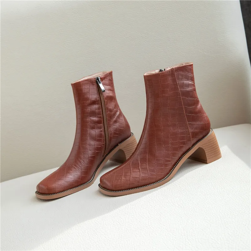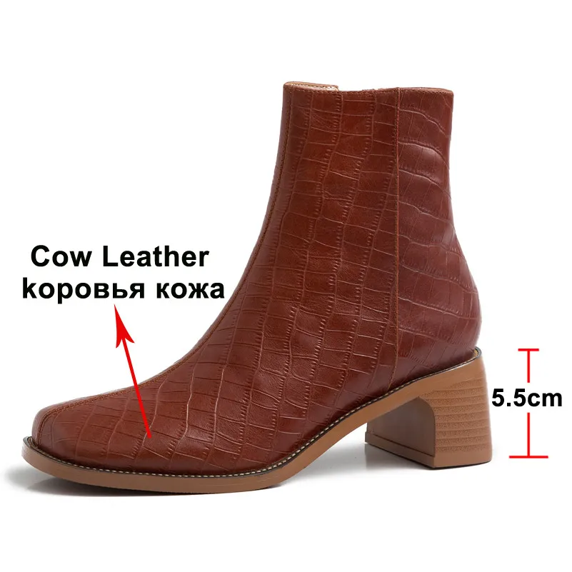 Product Name: Meotina jesień botki kobiety naturalne prawdziwej skóry grube szpilki krótkie buty na zamek błyskawiczny kwadratowy buty z palcami kobiet rozmiar 33 41
