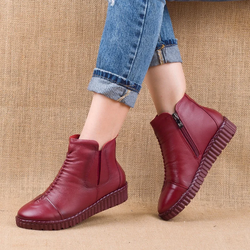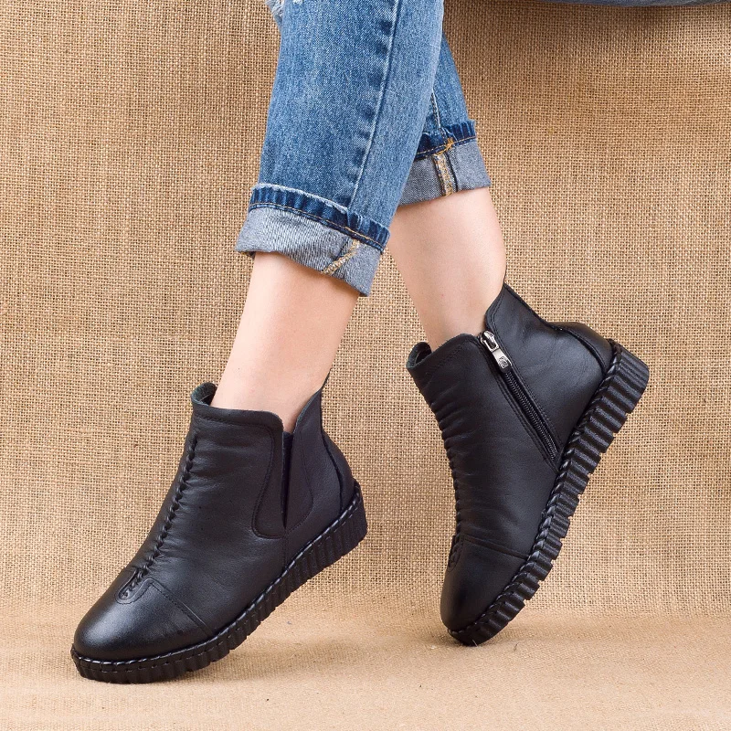 Special Offer GKTINOO 2020 zimowe buty do kostki ze skóry naturalnej ręcznie robione Lady miękkie buty na płaskiej podeszwie wygodne dorywczo mokasyny boczne zamki botki Discount 50% Today!