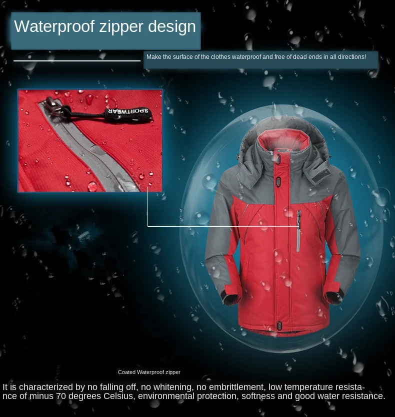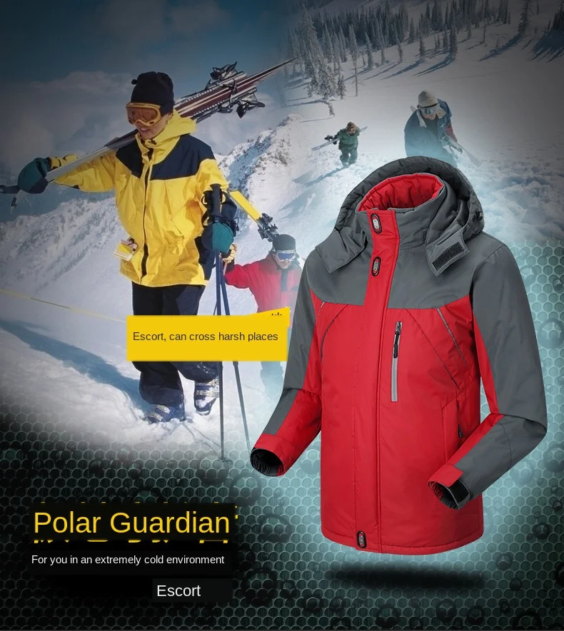 Product Name: Gruby ciepły kombinezon narciarski puchowy bawełniany wyściełany odzież turystyczna z kapturem alpinizm sportowy płaszcz przeciwdeszczowy