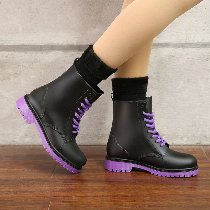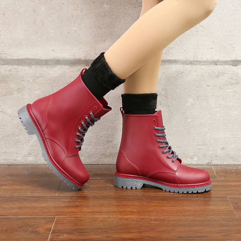 Product Name: Moda damska Rainboots wodoodporne buty kobieta błoto buty do wody gumowy sznur Up pcv botki szycie kalosze plus rozmiar 44