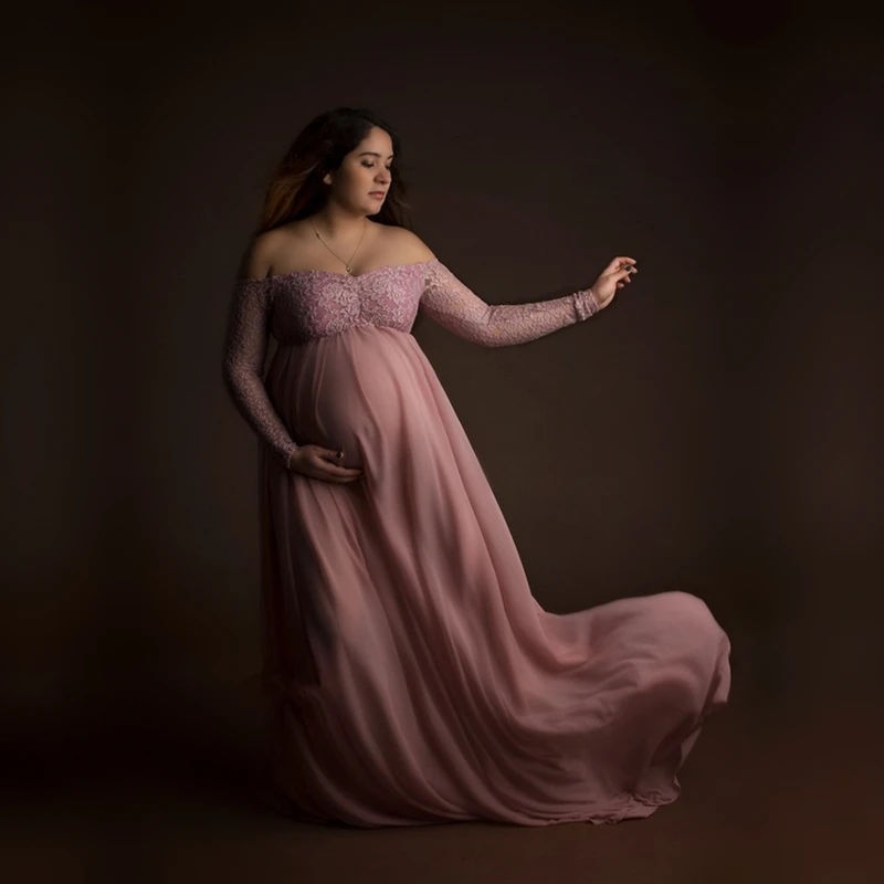 Product Name: Dusty różowy długi szyfonowy fotografia ciążowa sukienka słodkie serce koronkowa dla przyszłej mamy sukienki na sesja zdjęciowa szczelina otwarta sukienka ciążowa