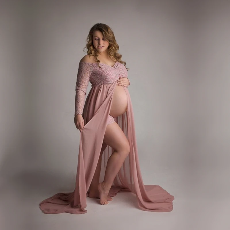 Special Offer Dusty różowy długi szyfonowy fotografia ciążowa sukienka słodkie serce koronkowa dla przyszłej mamy sukienki na sesja zdjęciowa szczelina otwarta sukienka ciążowa Discount 40% Today!