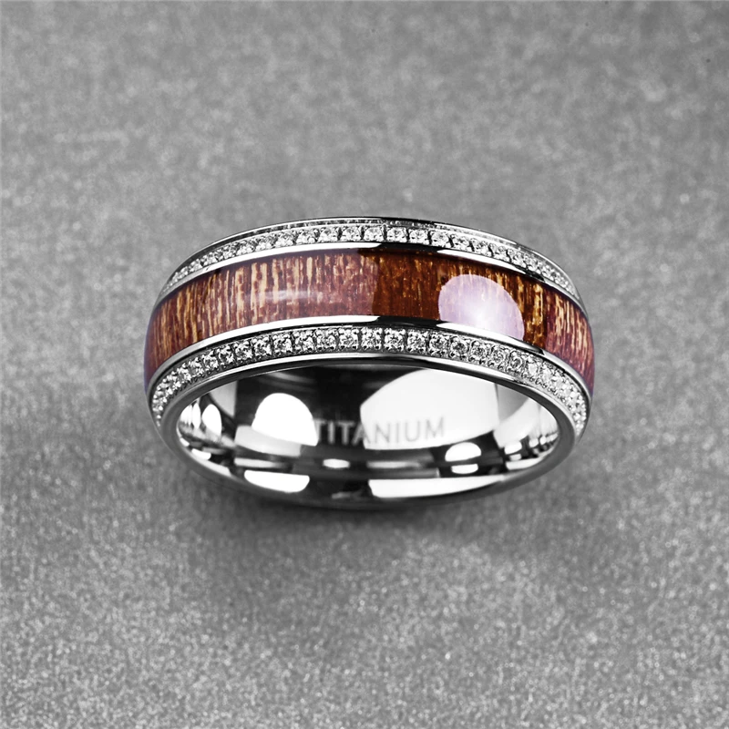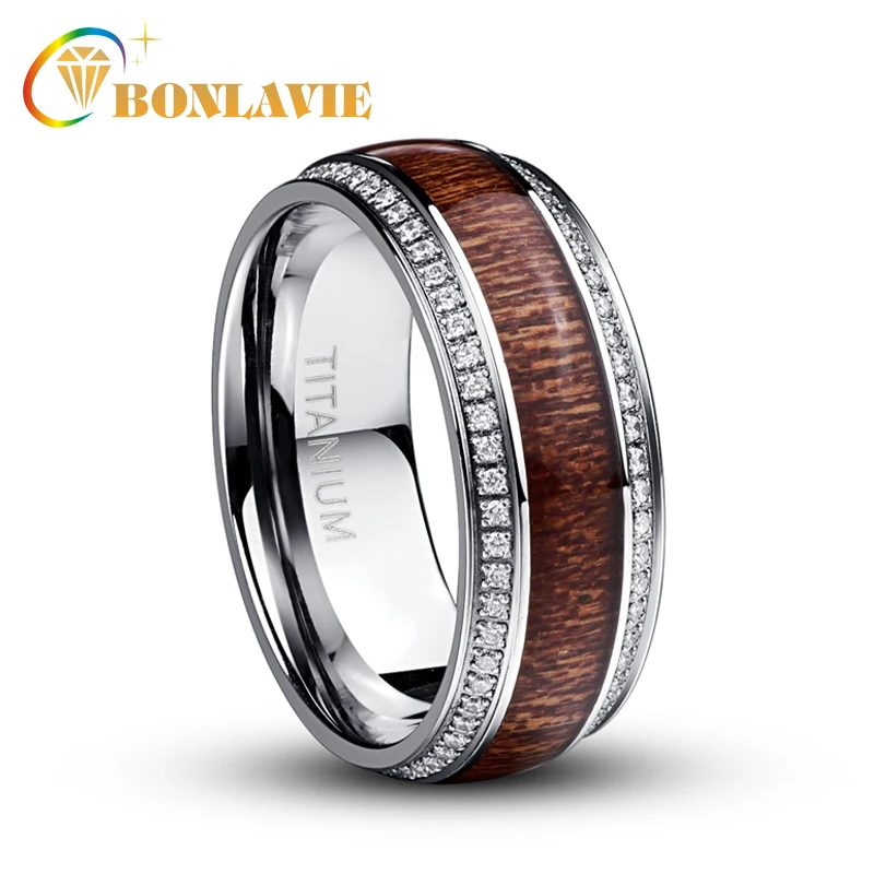 Special Offer BONLAVIE stal nierdzewna pierścień dla mężczyzn Micro Pave biały CZ drewno akacjowe tytanowe męskie obrączki biżuteria Discount 0% Today!