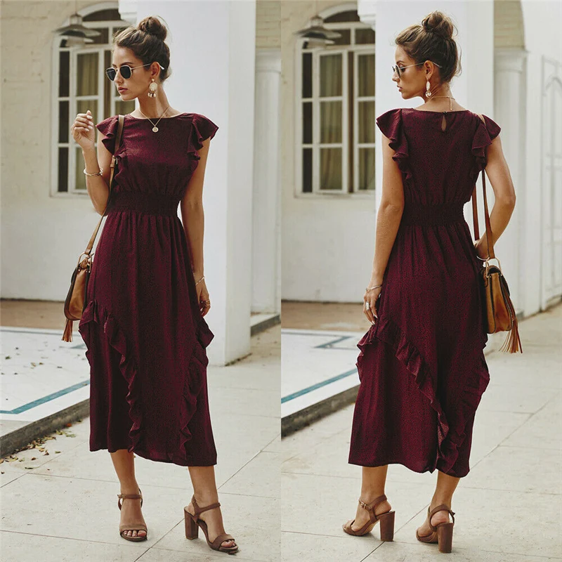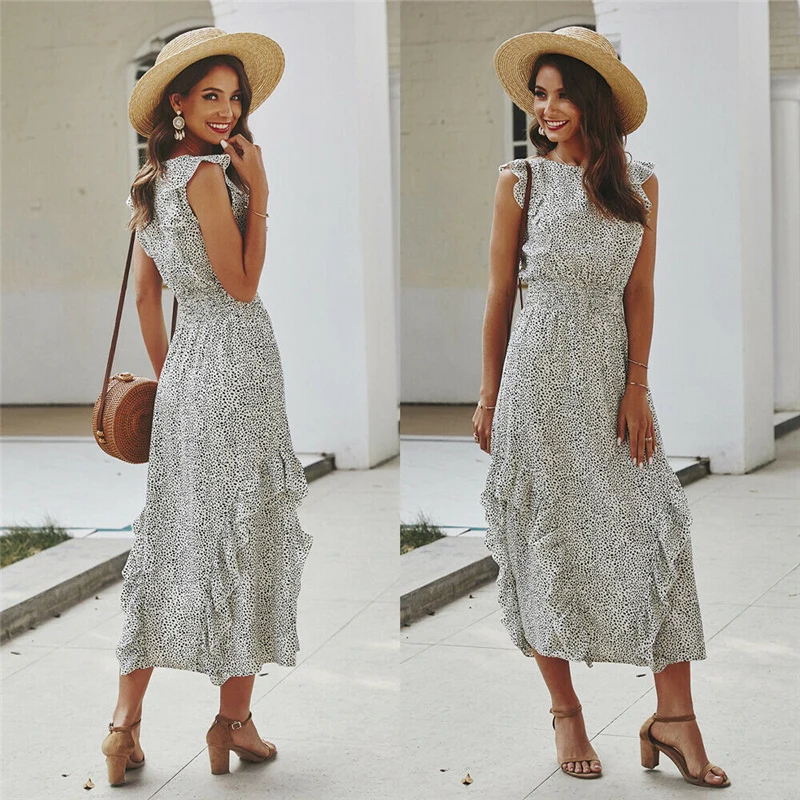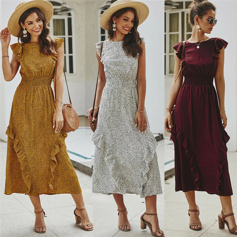 Special Offer Czerwona, marszczona długa, maksi sukienka druku Plus rozmiar Sexy w stylu casual, letnia ubrania plażowe kobiet Vestidos elegancka sukienka boho imprezowe sukienka klubowa Discount 30% Today!