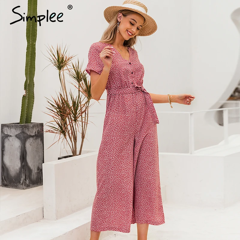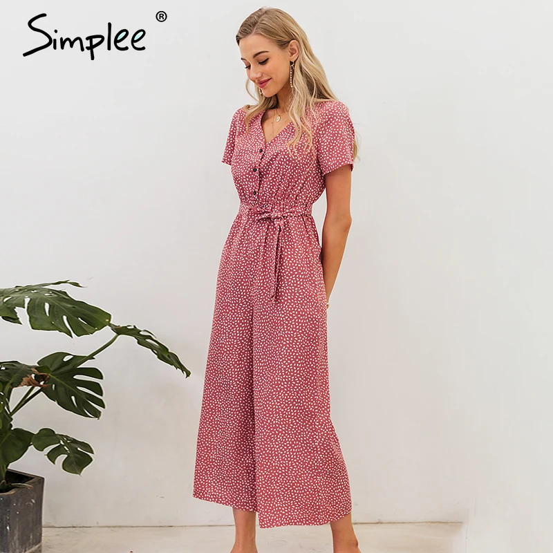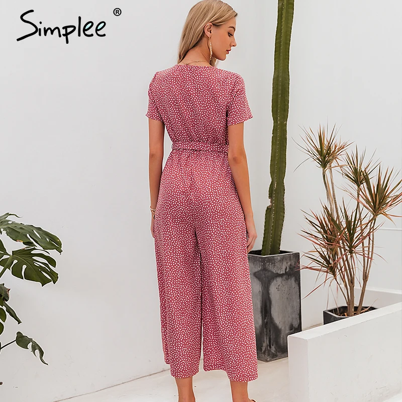 Special Offer Simplee Boho polka dot kobiety kombinezony V neck z krótkim rękawem skrzydła kobiece kombinezon romper przyciski letnie wakacje kombinezony plażowe Discount 40% Today!