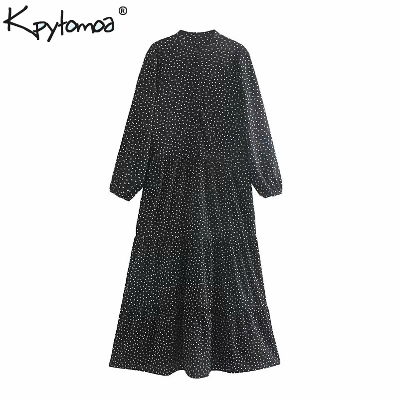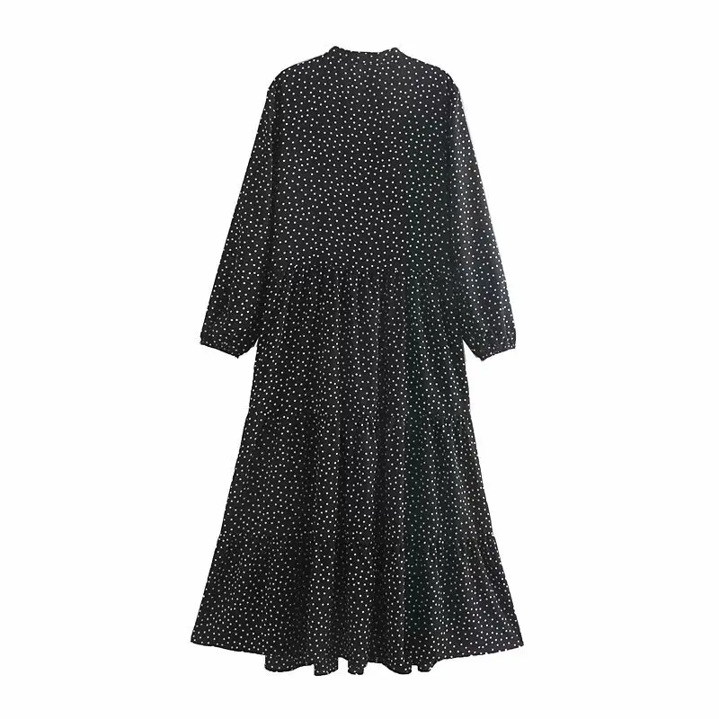 Product Name: W stylu Vintage eleganckie Polka nadruk w kropki plisowana maxi sukienka kobiety 2020 moda O Neck z długim rękawem stylowe sukienki Vestidos Mujer
