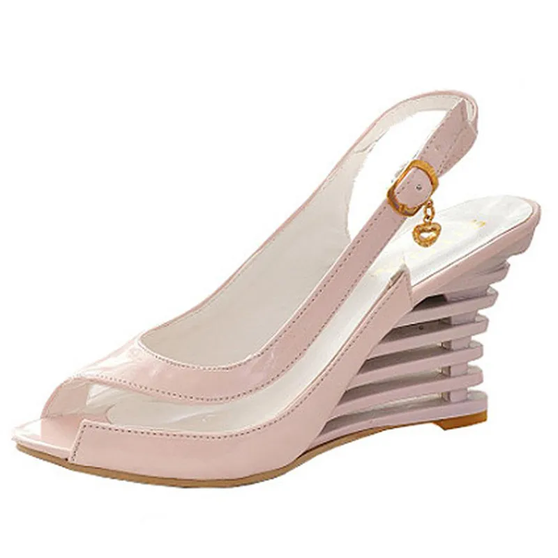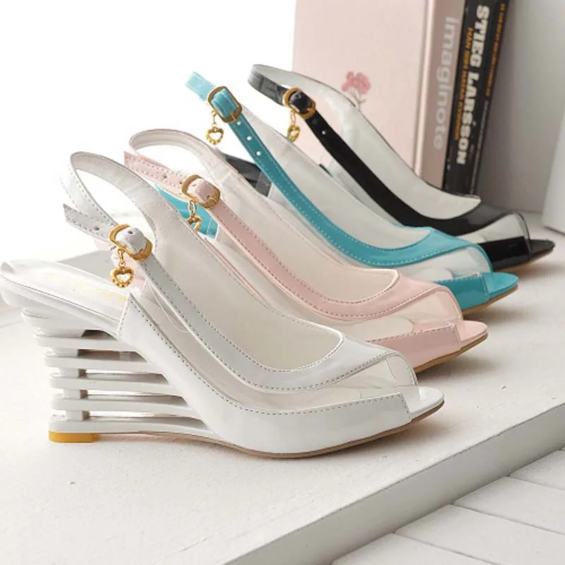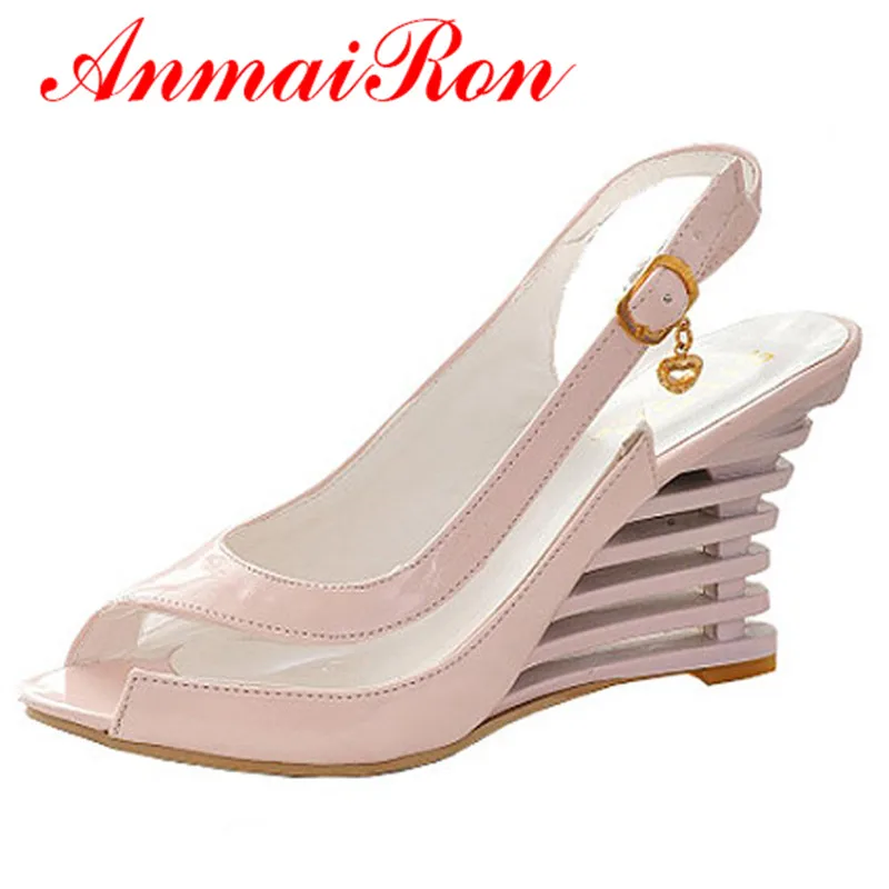 Special Offer ANMAIRON sandały na koturnie klamra styl buty z otwartym noskiem przezroczyste damskie letnie buty Patent PU Sexy letnie buty markowe kobieta Discount 48% Today!
