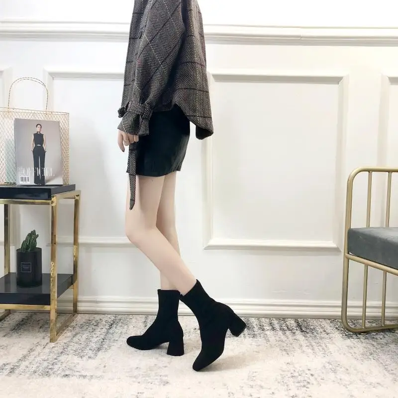 Special Offer Buty buty wiosna i jesień pojedyncze buty grube obcasy skarpetki buty kwadratowe kryty przez obrońców i w porę wyskoczył elastyczne buty na obcasie na wysokim obcasie buty Discount 48% Today!