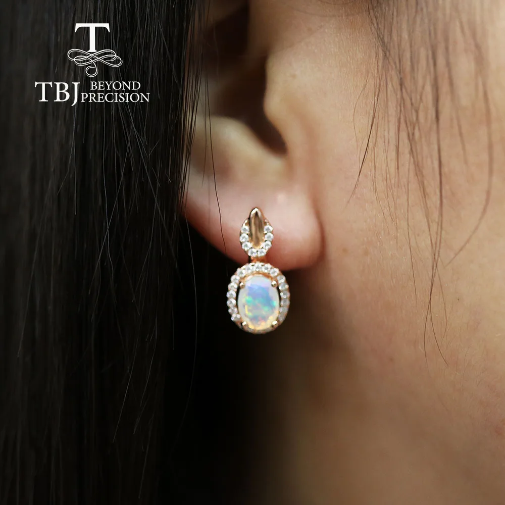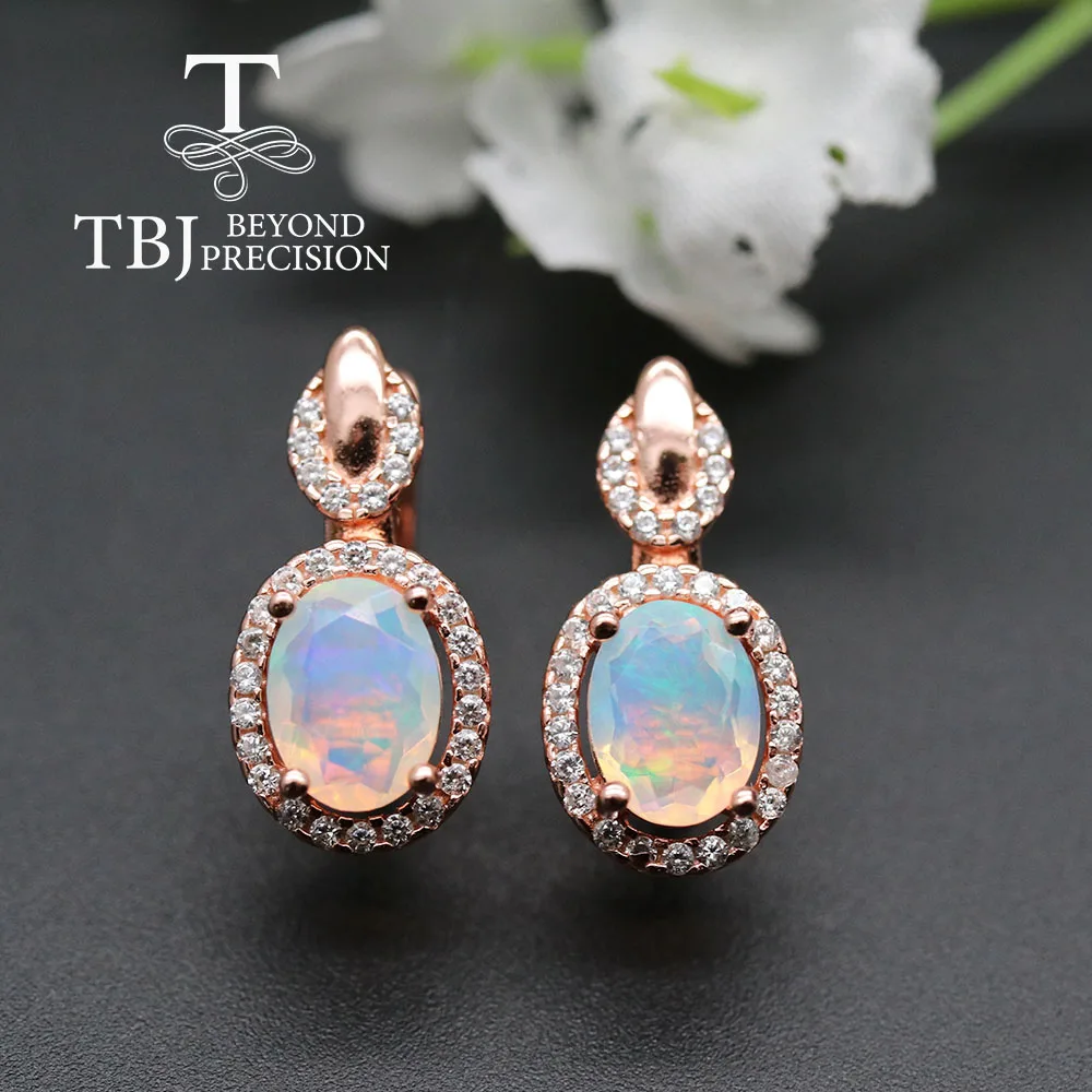 Special Offer Najwyższej jakości Opal zapięcie kolczyk, owalny krój 6*8mm 1.7ct naturalny kamień szlachetny 925 sterling srebrna róża kolor biżuterii tbj promocja Discount 8% Today!