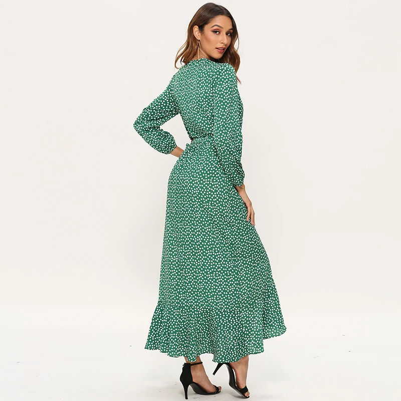 Special Offer 2020 kobiet długie sukienki w stylu boho Sexy V Neck z nacięciem, kwiecista sukienka Maxi Beach z długim rękawem wykończenie z falbanką sukienka Vestidos Mujer Discount 45% Today!