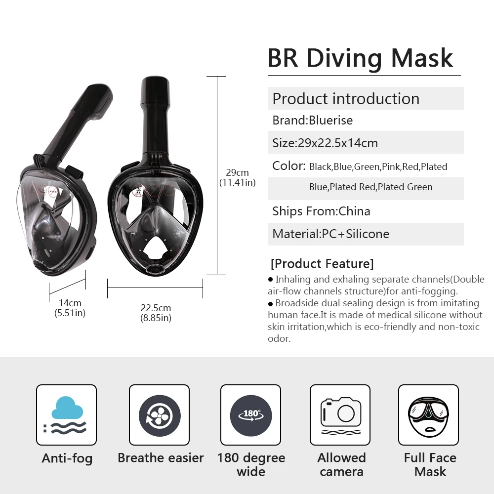 Product Name: BR BLUERISE Water Sport Anti fog maska do pływania pełna twarz maska do nurkowania Tube Swim Snorkel podwodne maski do nurkowania