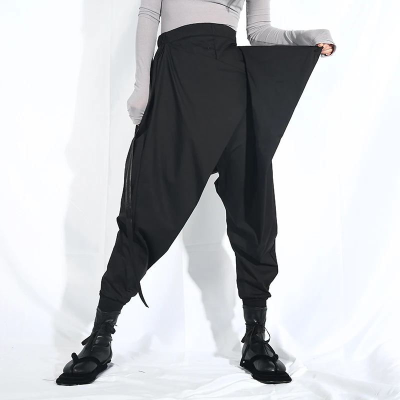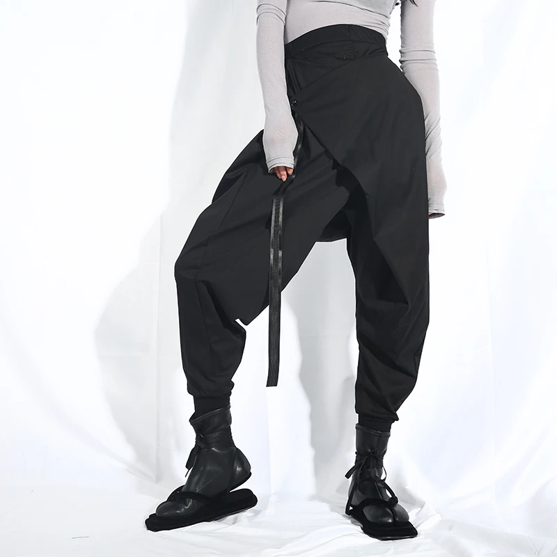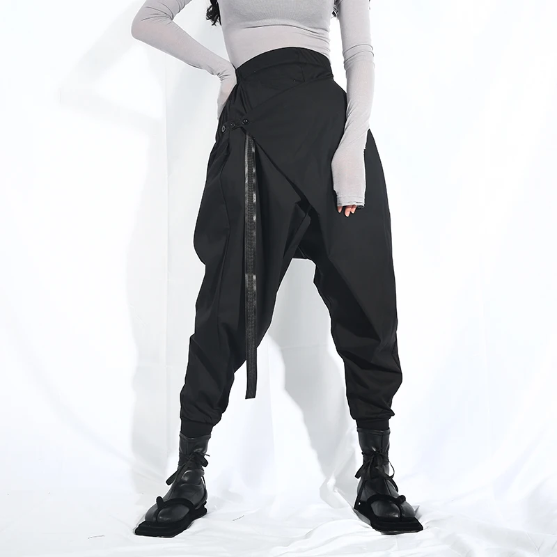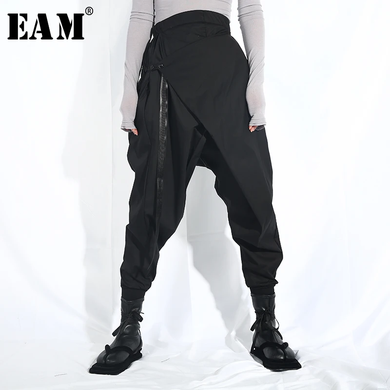 Special Offer [EAM] 2020 nowa jesienno zimowa wysoki w pasie luźne czarna wstążka podziel wspólne Harem spodnie damskie moda fala LA98 Discount 17% Today!