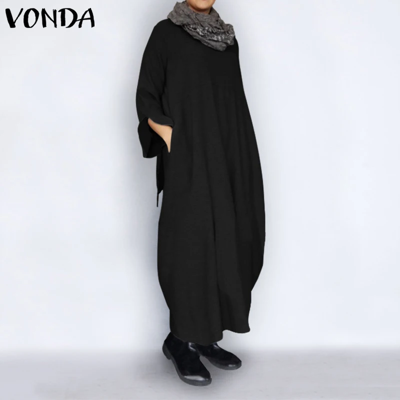 Product Name: VONDA Plus rozmiar letnia sukienka 2019 kobiety w stylu Vintage z długim rękawem Party Maxi długa sukienka cienka szata Femme dorywczo luźna szata Vestidos