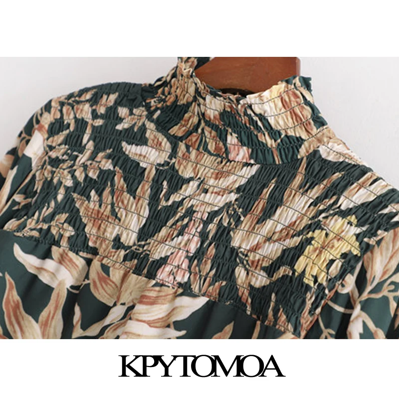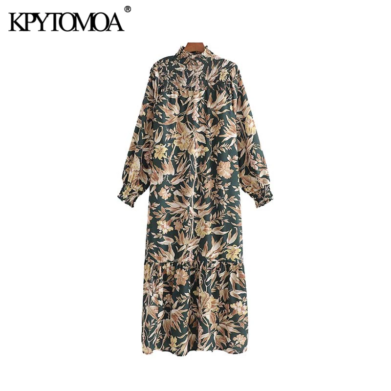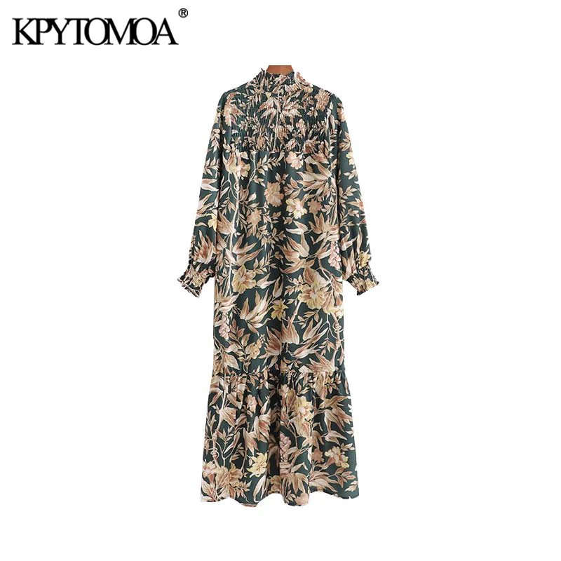 Product Name: Vintage elegancki kwiatowy Print Maxi Dress kobiety 2020 moda wysoki kołnierz z długim rękawem luźne sukienki damskie Casual Vestidos Mujer